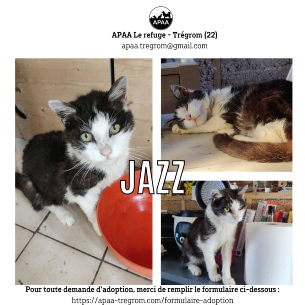 Jazz est arrivé chez nous grâce à une convention chats libres. Il a été estimé à une quinzaine d’années.