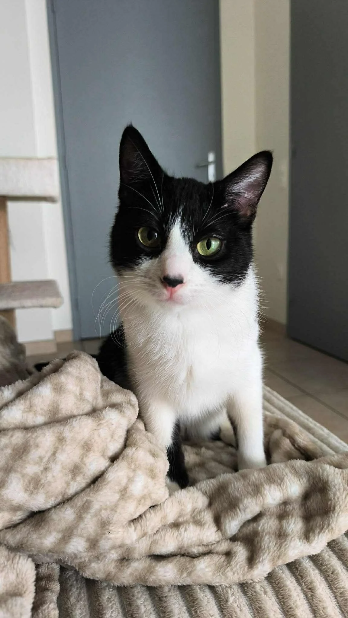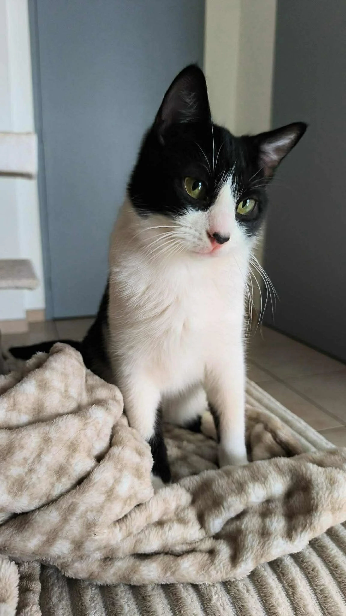 Grand amateur de confort, Pinceau peut passer des heures à se prélasser sur un plaid tout doux, à profiter des caresses et de la présence de son humain