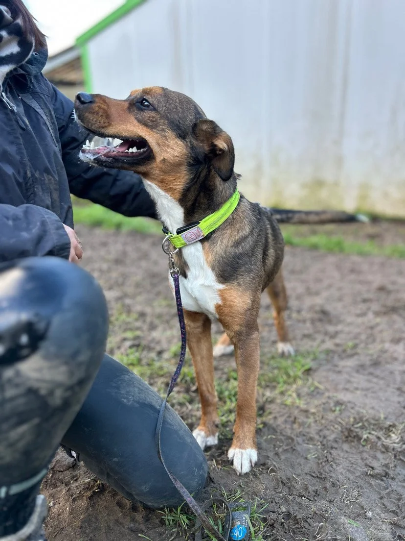 Elle s’entend également bien avec ses congénères et est actuellement en box collectif.