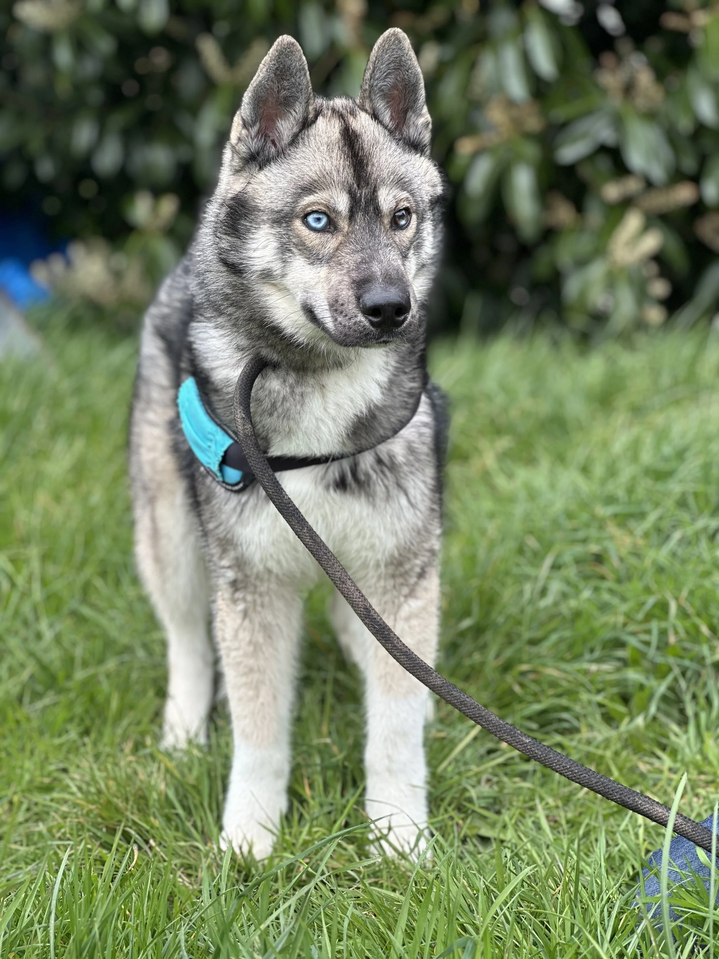 Voici Sunny,un husky de Sibérie croisé chien loup tchécoslovaque de 9 mois.